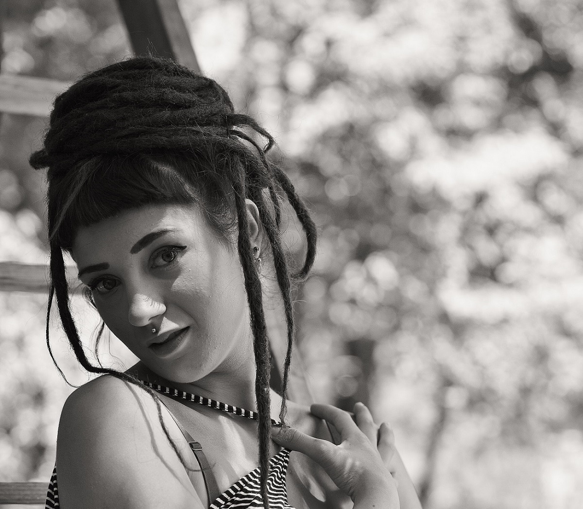 La luce non mi sembra sia stata tua complice, ma sei riuscito a mantenere una buona uniformità per gran parte del viso, tranne nel naso e un pizzico nell'occhio a fuoco. Peccato davvero per quel palo che sbuca sopra la testa: un pò rovina la pulizia della composizione. Avrei aperto un filo le ombre sui capelli.