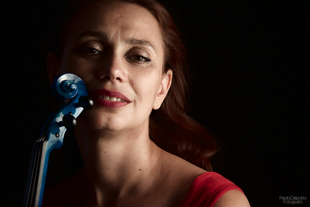 Il ritratto ad Alyona è bello, valorizzato da una bella luce che ha messo in evidenza alcuni colori come quello dello strumento che è blu, una piccola porzione di abito che è rosso, come rossi sono i suoi capelli ed il rossetto, il suo mento per come è disposto il viso è volitivo ed anche il suo sguardo che mi azzardo a dire "sensuale" , ecco allora che emotivamente vedo un collegamento , il violino diventa un oggetto celestiale suonato da un animo nobile e con grande passionalità.