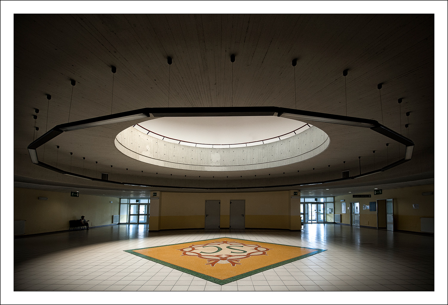 Molto bella. Questo spazio quasi da nave aliena come alienante è la condizione di attesa del proprio turno in un ambiente silenzioso, desolato in cui si può quasi percepire il battito del proprio cuore accompagnato dai propri pensieri, seduti a margine, in disparte, isolati come a suggerire "ho altro a cui pensare, non disturbatemi". L'attesa che si fa pesante e attorno il nulla e pochi rumori che in quel silenzio sono amplificati e ti fanno sussultare.