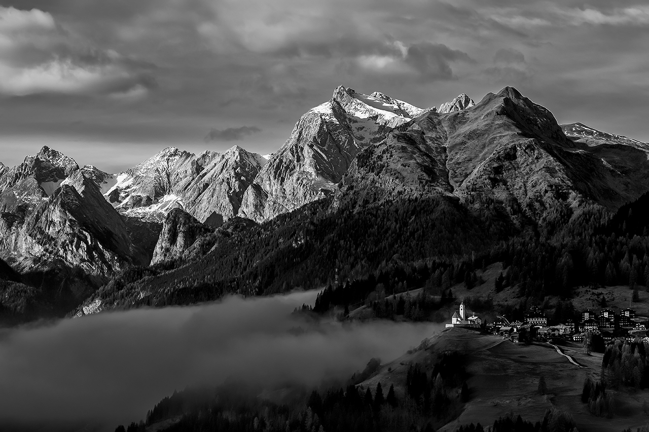 Quanto sia affezionato a questo paesaggio e a questa valle, al campanile di Colle Santa Lucia, a questa vista del gruppo della Marmolada io lo so e me lo conservo. Grazie a te per aver fatto vedere questo paesaggio. Bellissimo il bianco e nero, ottima la luce sopra sulle rocce ben dettagliate, suggestivo quello strato di nuvole sulla val Cordevole là sotto. Il bordino bianco sul profilo del Migogn sarebbe da correggere, per me resta una foto molto apprezzabile. Ciao, Francesco _________________ Fotocamere Olympus OMD e PEN, Panasonic G3. Software GIMP