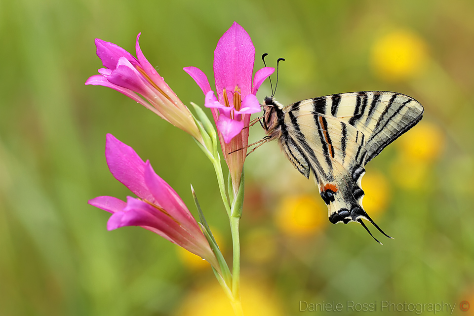 ciao Daniele, bentornato e ritorni con un'ottima immagine dove i bellissimi fiori rubano quasi la scena all'altrettanto bel podalirio...ottime cromie, gran dettaglio e ottimo sfondo...in hr si notano dei righini chiari intorno alle antenne e alle codine, forse un leggero eccesso di mdc, ma che non inficia con la bontà dello scatto...complimenti