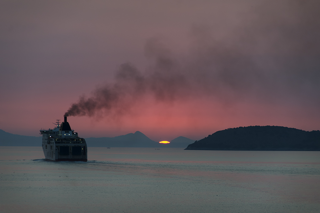 Bella immagine, con le sue luci crepuscolari e colori offuscati; ottima anche la composizione. Il fumo denso di gasolio della nave sembra volerci riportare indietro nel tempo, all'epoca dei grandi piroscafi a carbone e degli emigranti. Tutta l'atmosfera è pregna di malinconica nostalgia. Dove siamo?