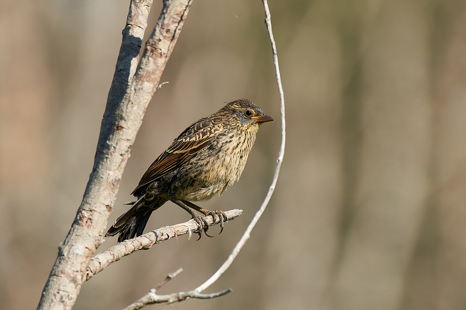 Grazie ad un aiuto esterno, ho appeno scoperto di cosa si tratta: Femmina di merlo dalle ali rosse (Agelaius phoeniceus)