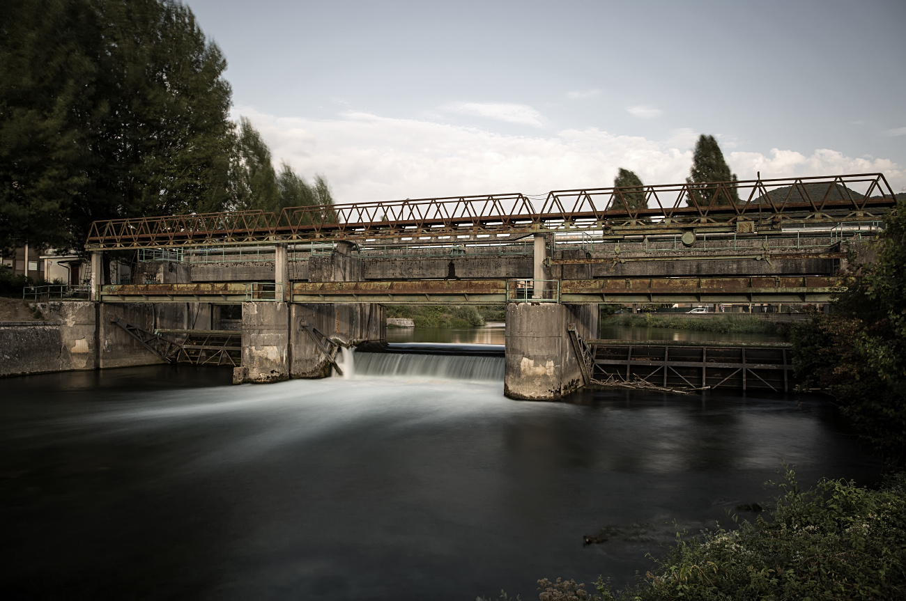 Immagino l'uso di un filtro nd! Il risultato è ottimo. Bellissimo il contrasto fra l'effetto mosso della "cascata" e la la trama strutturale della chiusa.  |