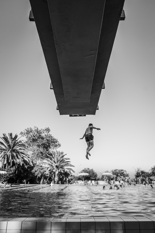 Simpatica e quasi un po' visionaria, per le proporzioni particolari che risultano dal tuo punto di scatto, fra trampolino e tuffatore sospeso!