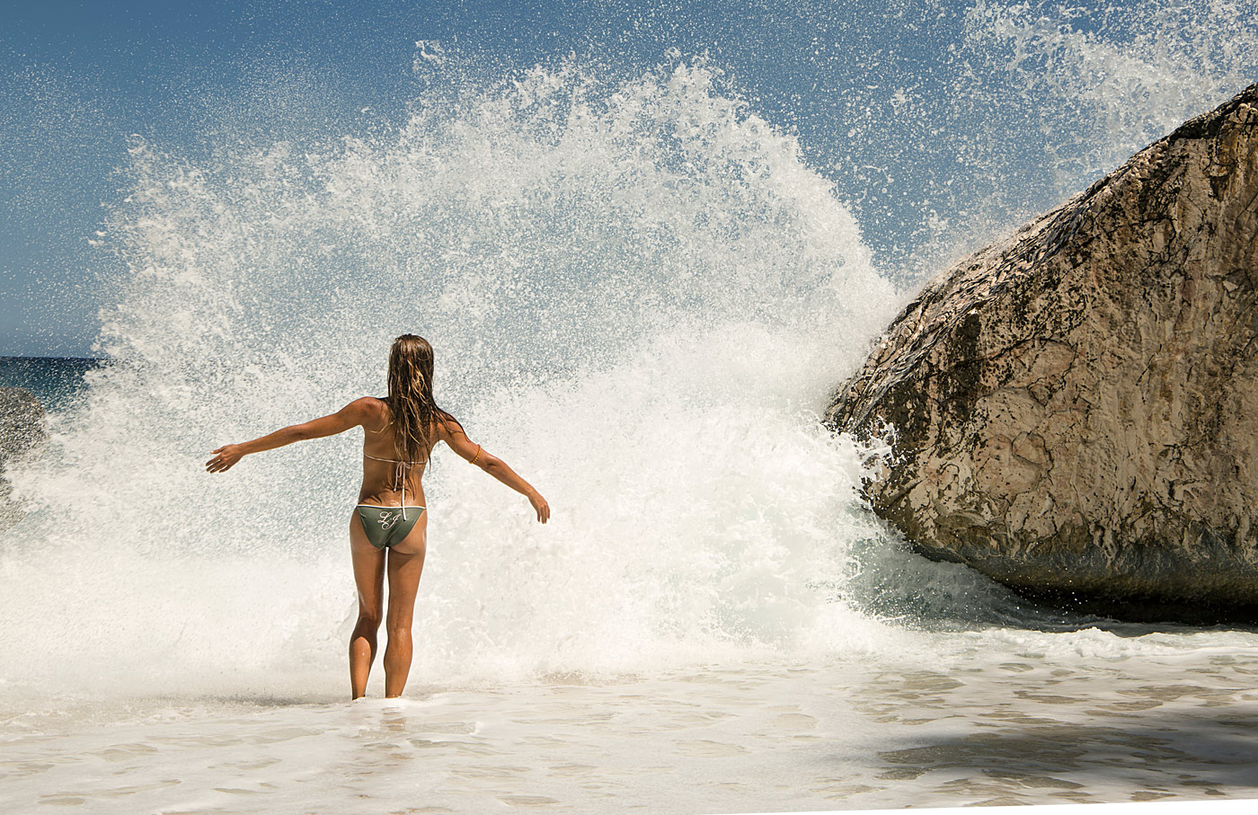 Splendido momento colto e fermato nell'attimo in cui doveva. Luce forte ma ben gestita . La ragazza sembra aspettare questo evento quasi fosse seriamente andato a cercarlo ma effettivamente, poche cose sono belle in piena estate come gli spruzzi naturali dell'acqua marina su tutta la pelle. Poi c'è chi invece di approfittarne pensa a scattare le foto Come darti torto