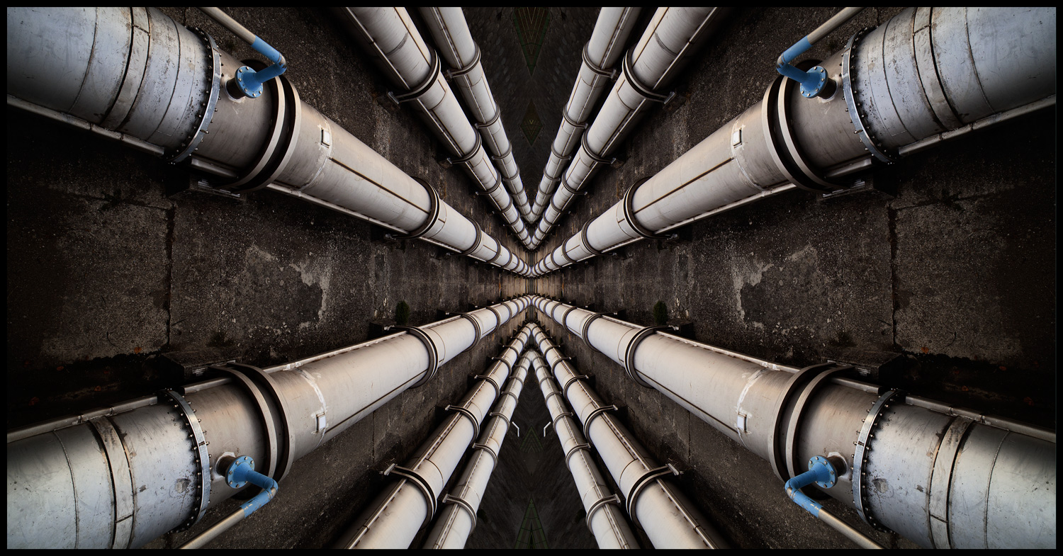 Vertiginosa, non mi vengono altri aggettivi, e lo sguardo viene attratto verso il centro dell'immagine dove convergono i tubi. Molto interessante
