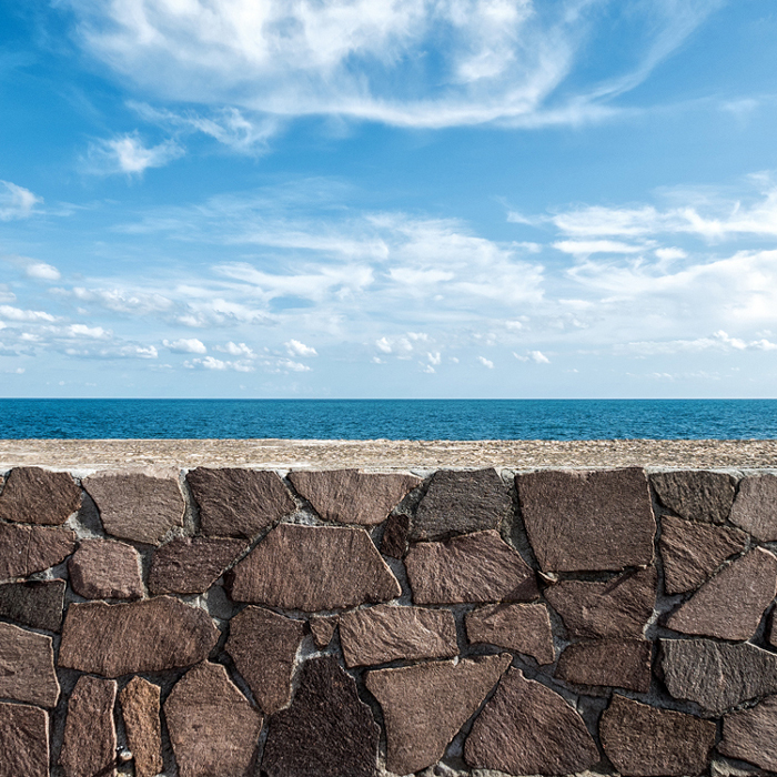 Geometrie di pietra nella parte inferiore, giochi di forme libere fra le nuvole. Una bel raffronto , piacevole anche nelle tinte.