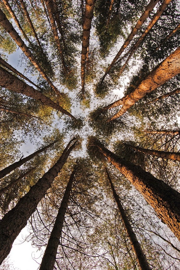 direi quasi ipnotica, bella la luce calda che filtra sui tronchi.