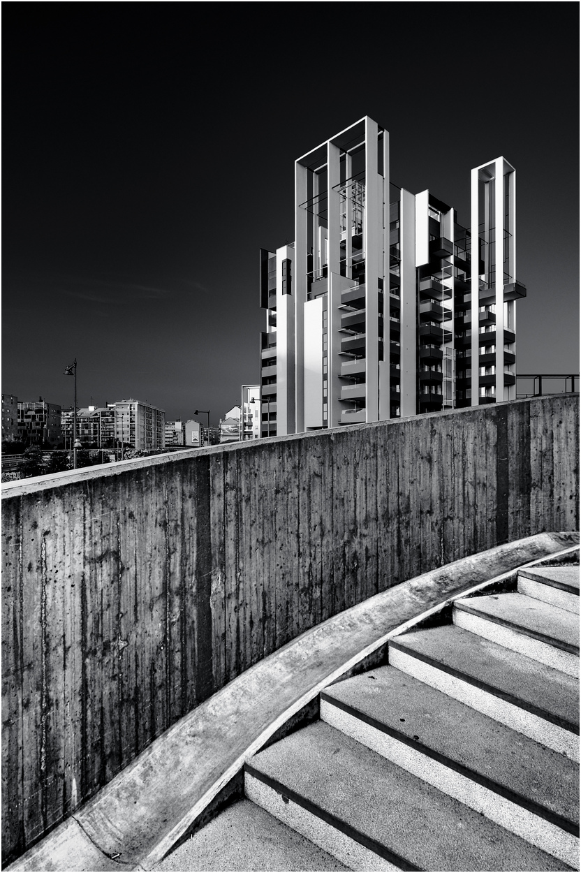 Piace molto anche a me. Il frame equamente distribuito nei volumi sopra e sotto con dei rimandi geometrici dei gradini e dei balconi dell struttura in secondo piano, la grande profondità di campo e un bellissimo BN articolato e dettagliato. Ottima  _________________ - Fotografo della domenica |