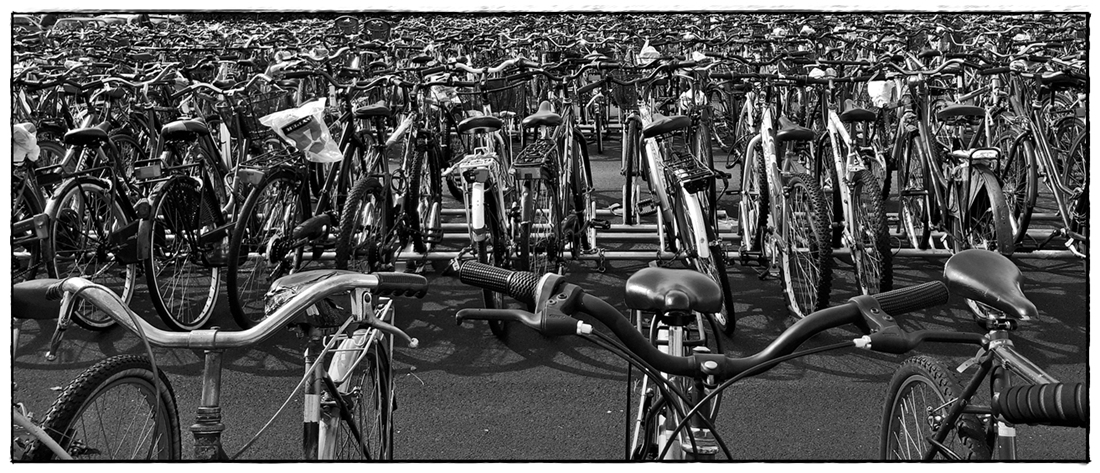 Concordo con chi mi ha preceduto il taglio che hai dato alla foto costringe a concentrarsi sulla texture data dalle bici. Il bn poi è la giusta conclusione per esaltarne i particolari