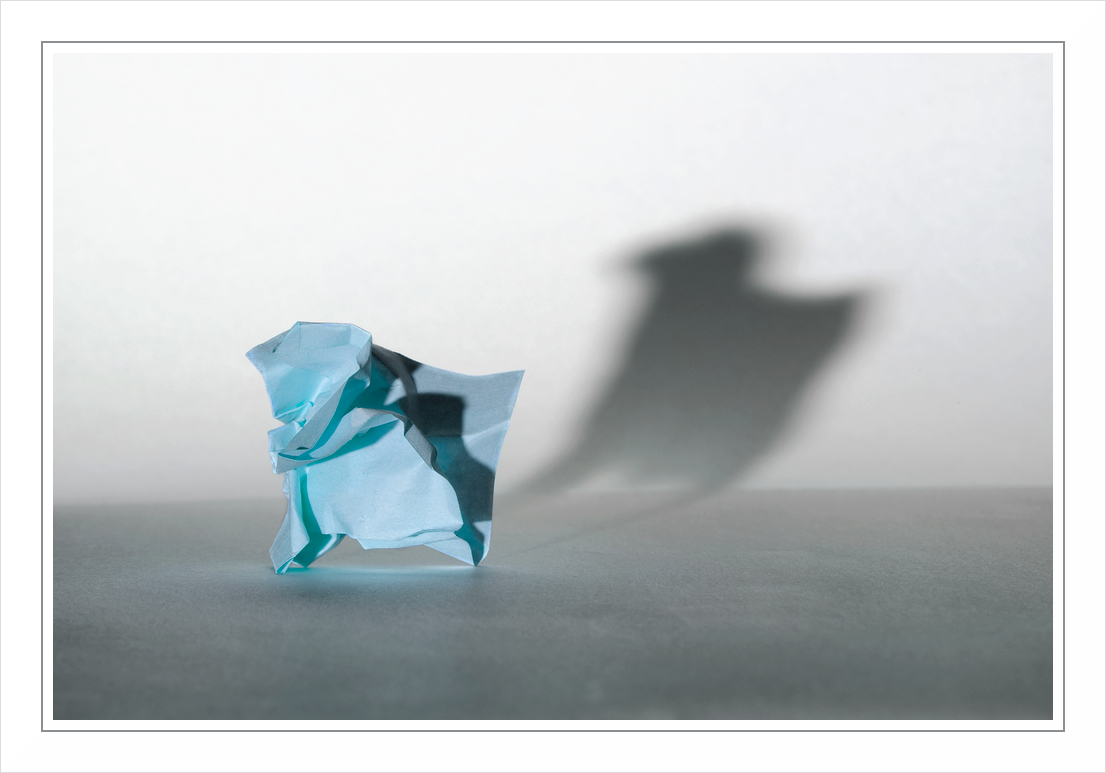 Magnifica realizzazione,elegante e suggestiva immagine che fa volare la fantasia.Un foglio accartocciato che da vita,con la sua ombra,a ciò che ognuno vuol vedere:dal fantasma al cagnolino,alla pecorella!Bellissimo il colore ed ottima anche la presentazione.Complimenti e preferita. Ciao
