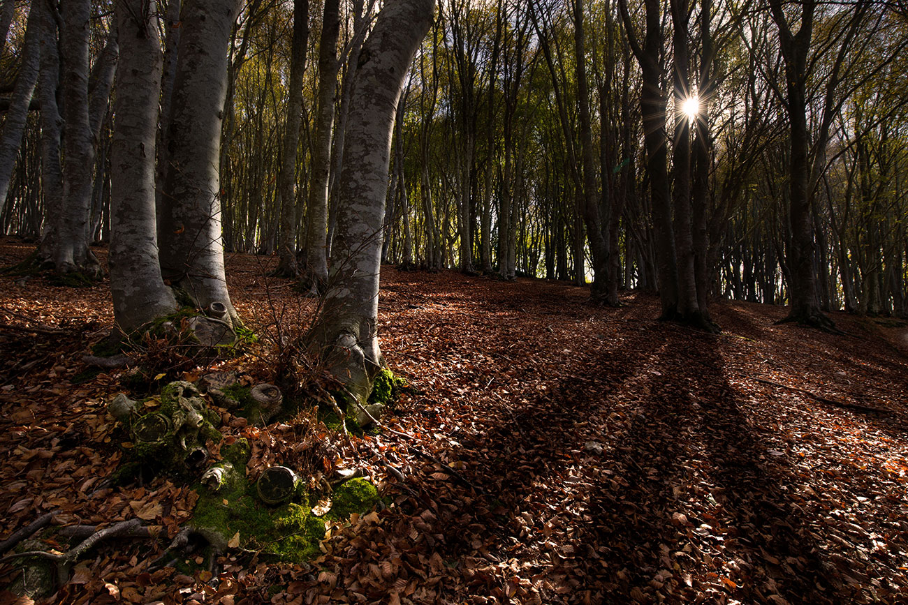 bellissima quella stella in mezzo ai tronchi e bel gioco di luci e ombre nel sottobosco..direi una foto riuscita...complimenti
