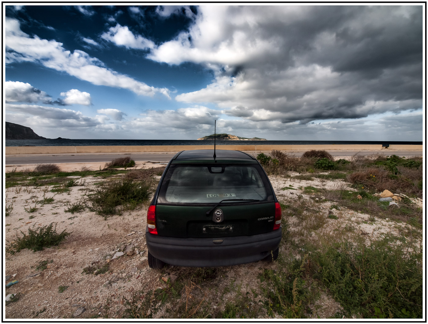 La centralità dell'auto (una macchia scura) toglie ariosità ad un paesaggio che, pur non lasciando a bocca aperta, aveva un suo perché.