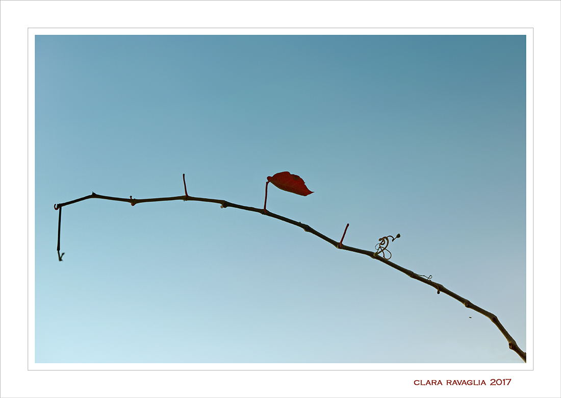 | Ciao Clara, emotiva quest'ultima foglia di vite che sembra opporre una estenuante resistenza all'imminente arrivo della cupa stagione invernale. Minimale e fortemente emotiva. Complimenti anche per la composizione, perfetta.