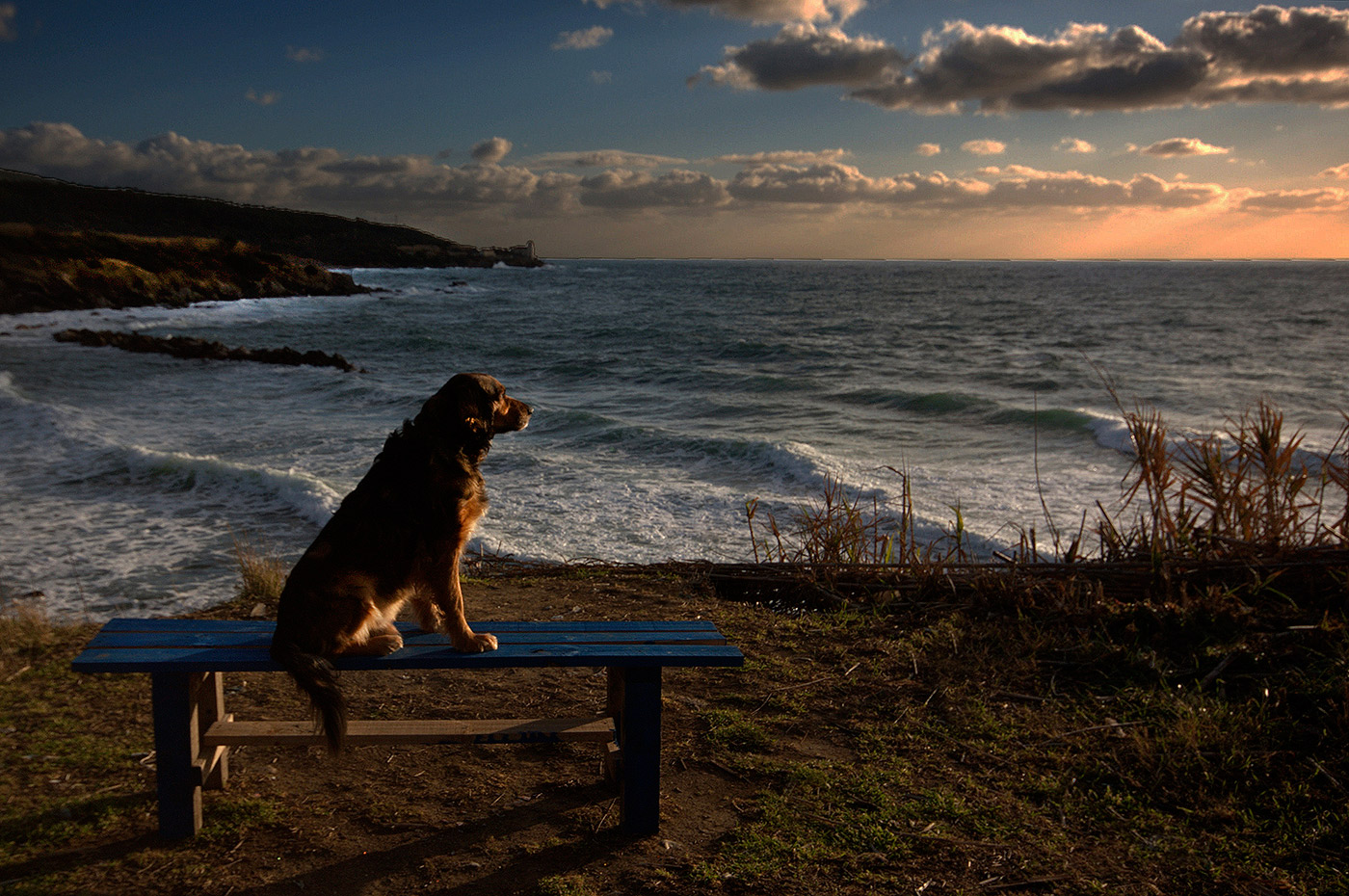 Dolcissimo e bellissimo cagnolone quasi malinconico a contemplare il mare,forse in attesa di qualcuno,con gli ultimi raggi di sole ad accarezzarlo.Bella luce e ottima composizione  _________________