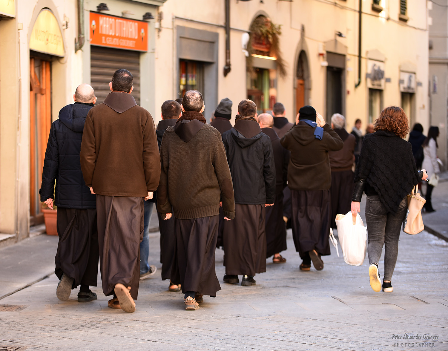 Uomini con la gonna e donna con i pantaloni, ottimo colpo d'occhio per una scena inusuale.ben colta