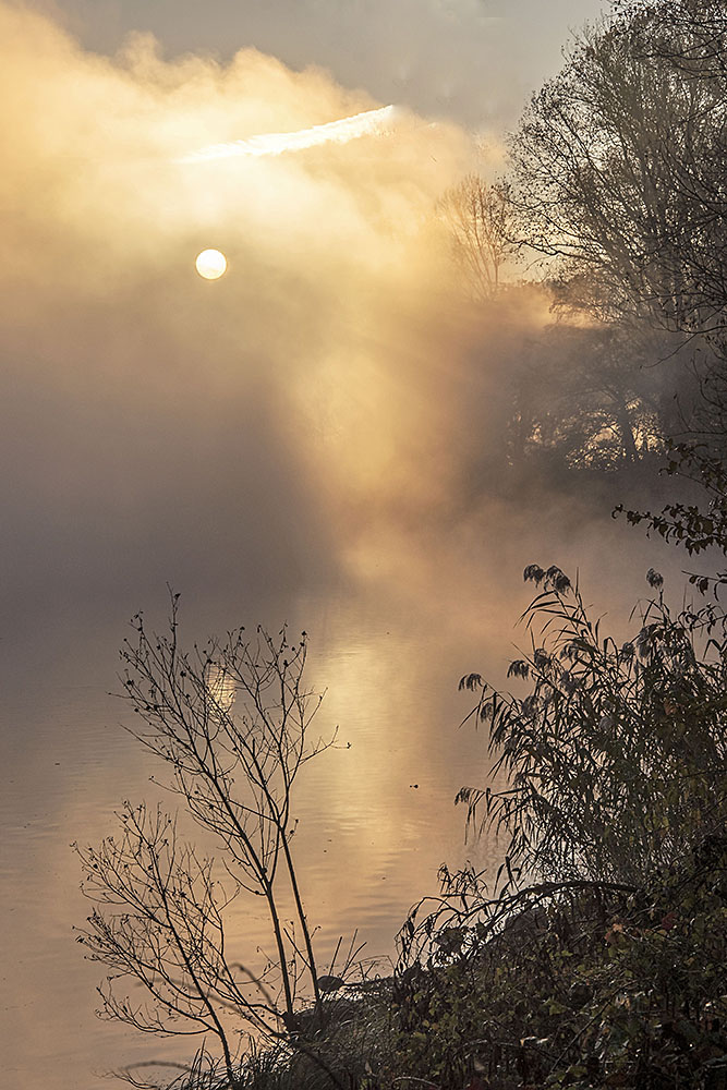 Un sole seminascosto dalla nebbia, luce ottimamente gestita