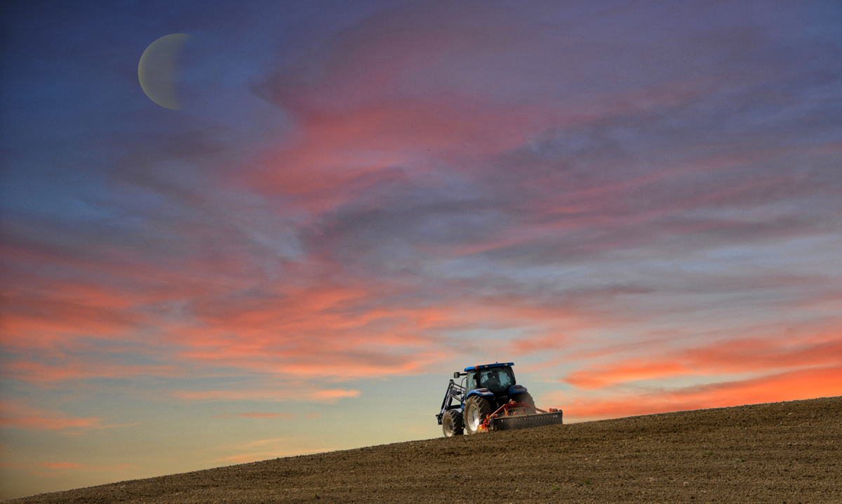 Gran bella immagine, non so se hai cambiato il cielo in post, dai vetri del trattore traspare un azzurro diverso e la luce sulle ruota e' molto dura in contrasto con la delicatezza del cielo, ma a parte questo la foto funziona.