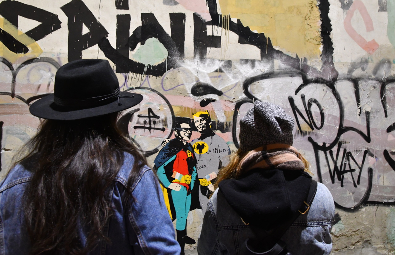 Molto bello questo scambio di sguardi tra i personaggi del murale e la coppia di osservatori.Ottimi anche i colori.  _________________ Sergio Demitri https://www.flickr.com/photos/124946035@N02/ |