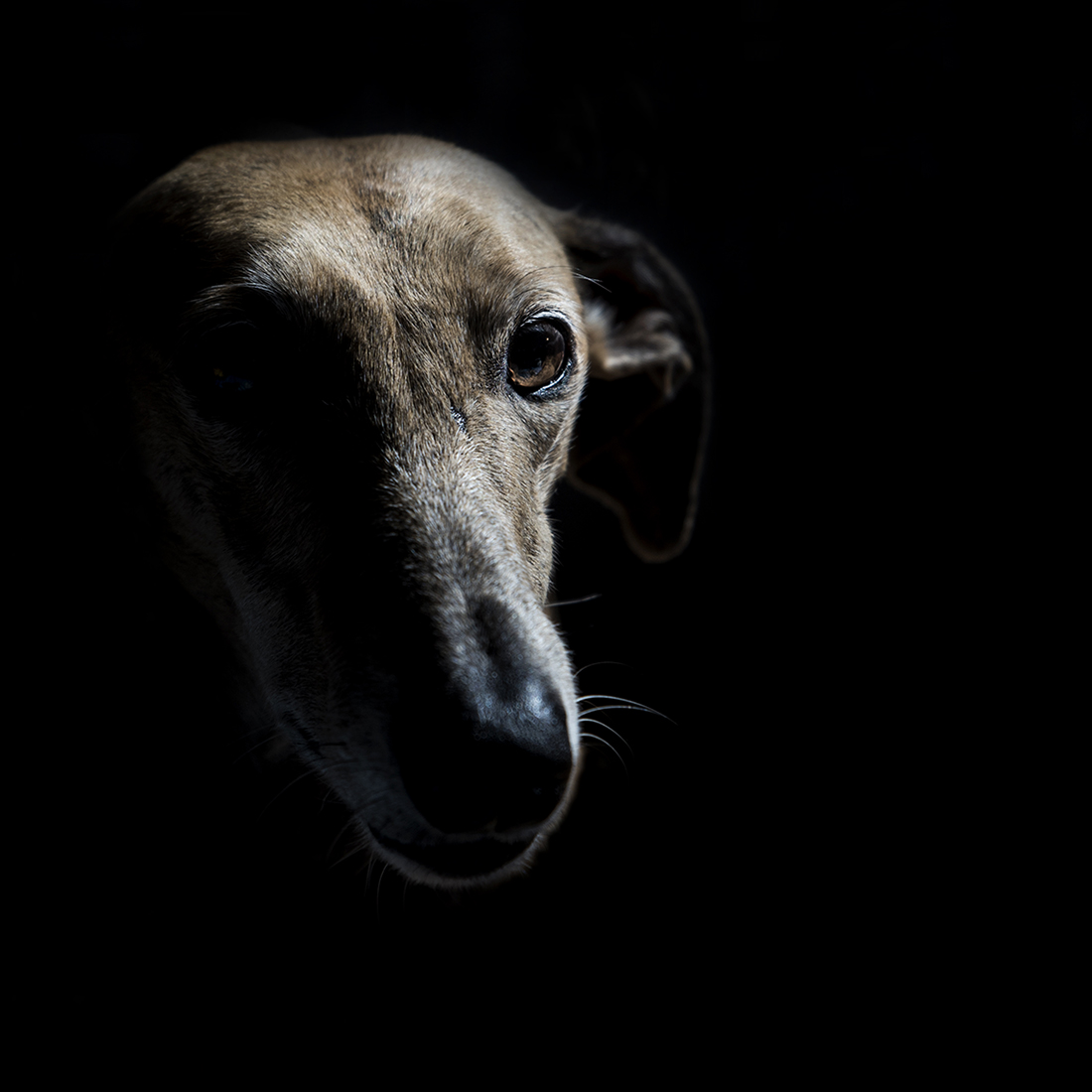 Ciao Carlo, ottimo questo ritratto con il muso del cane che emerge misteriosamente dallo sfondo buio. Perfetto il fuoco sull'occhio, giustamente quello più lontano poiché in questo caso quello più vicino rimane in ombra.