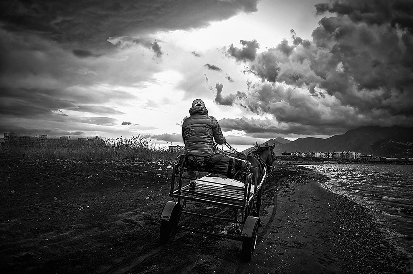 un ottimo b/n che enfatizza un cielo minaccioso dà a questa immagine un aspetto vagamente surreale, mi piace moltissimo