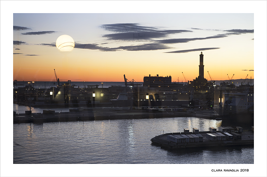 ...dal punto di scatto più alto a prua potevo indradrare solo dalle vetrate esterne di protezione, e quando ho visto sia i faretti che il lampadario rotondo riflessi nel paesaggio, ho scherzato un po' con una finta superluna.... Anche per questo ho postato in varie.