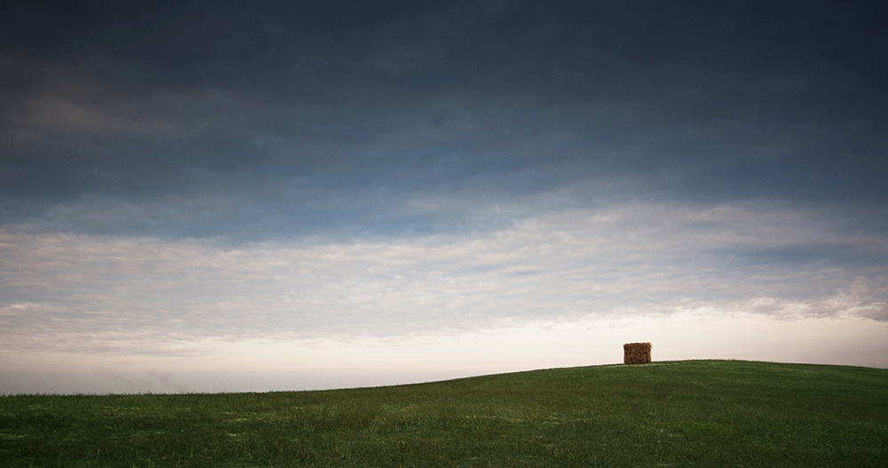 Sinuosa ed elegante. Lo spazio suddiviso in tre parti, una concreta e verde le altre due aeree tra loro di diverso tono sono molto belle e funzionali a concentrare il tutto sulla grande "catasta" di balle di paglia.