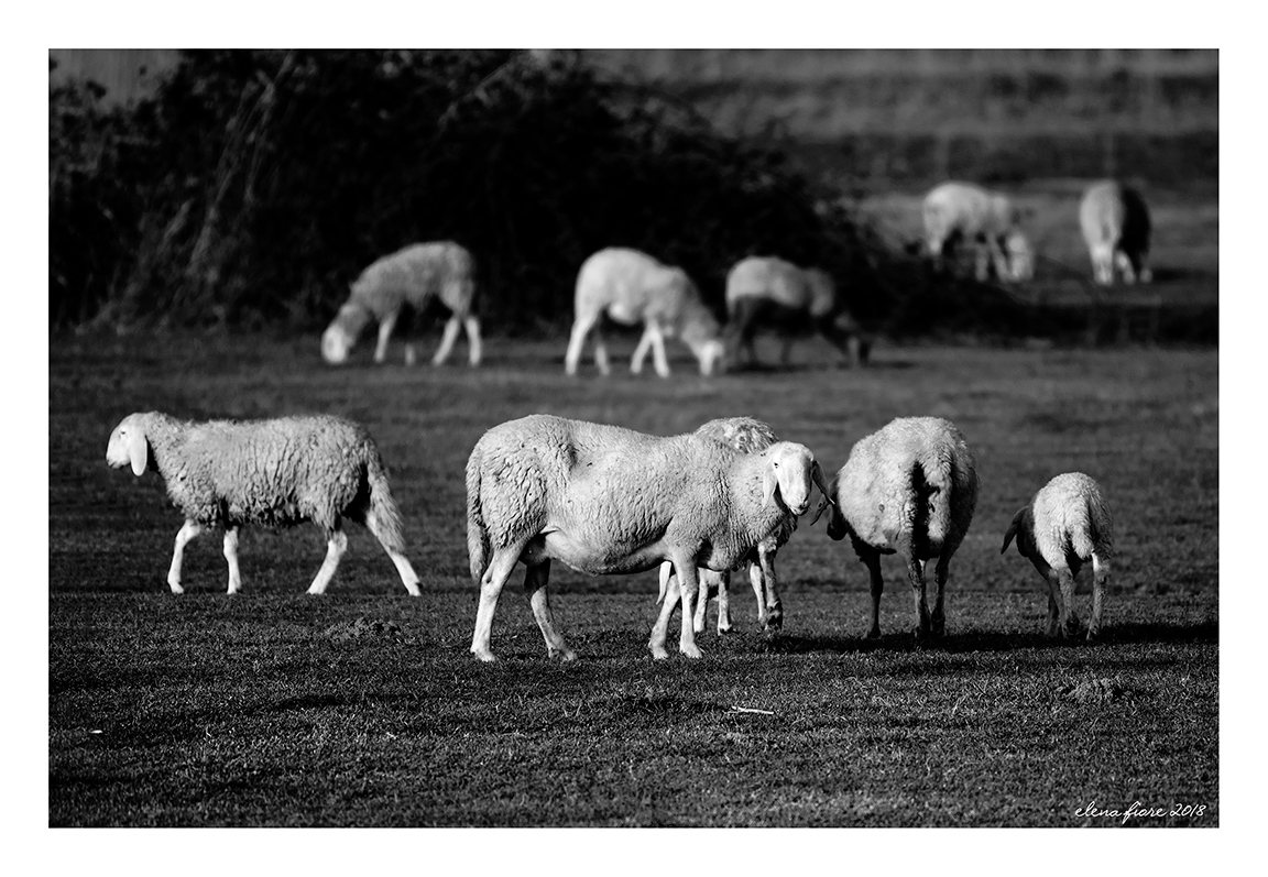 | Brava Elena. Il titolo è simpatico  e la foto compelssivamente è ben condotta. I dati di scatto ci parlano  di una luce intensa, che hai ben padroneggiato , senza bruciare il vello del gregge ( forse una piccola intensità su un musetto o due, ma sono convinta che sono punti recuperabilissimi dall'orifinale)  . La protagonsita principare ti ha regalato uno sguardo in camera che arricchisce la ripresa in fondo classica e molto naturale.