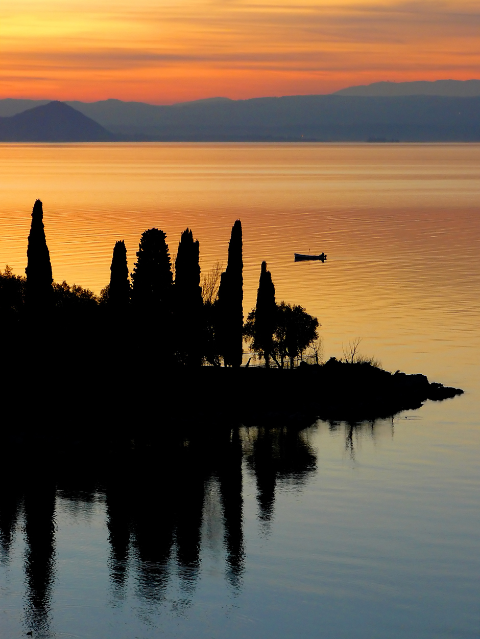 Lo scorcio e' Baia Delle Sirene sul lago di Garda. Un meraviglioso tramonto invernale sul lago di una tersa e fredda giornata invernale di alcuni anni orsono. Il Garda ha sempre una luce particolare, forse il colore leggermente smeraldo dell'acqua, forse le montagne che lo circondano, ma regala spesso atmosfere uniche.