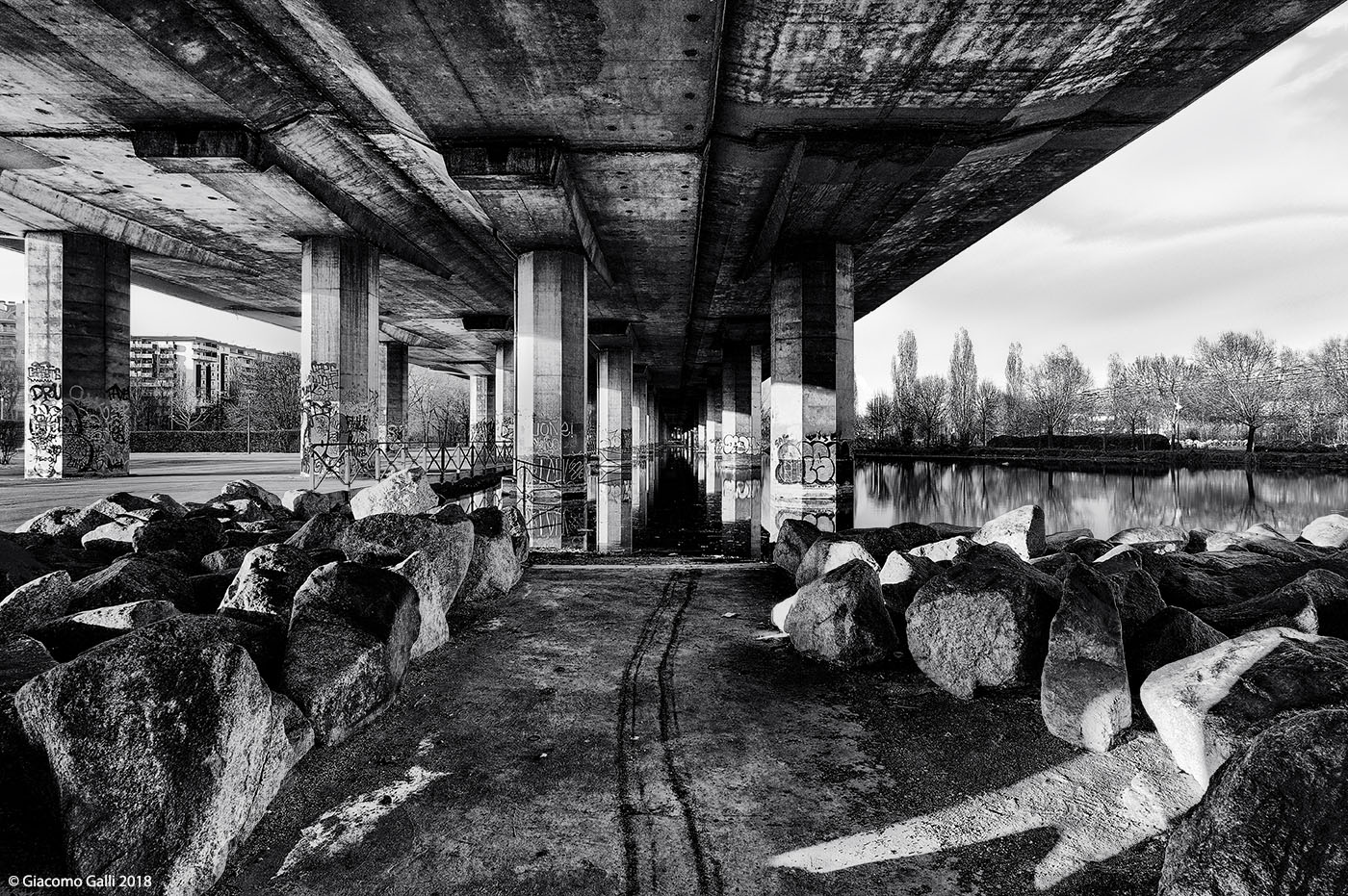 Un bn duro,perfettamente adeguato al soggetto,ottima prospettiva con le lunghe linee di fuga e grande profondità.Bello scatto.