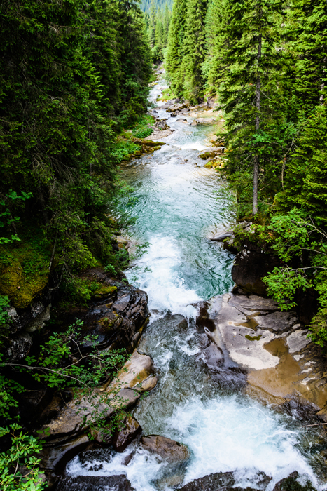 Trasmetta tutta la freschezza che la montagna sa regalare. Verdi brillanti e tenui celesti in questo torrente che si snoda fra la fitta vegetazione.