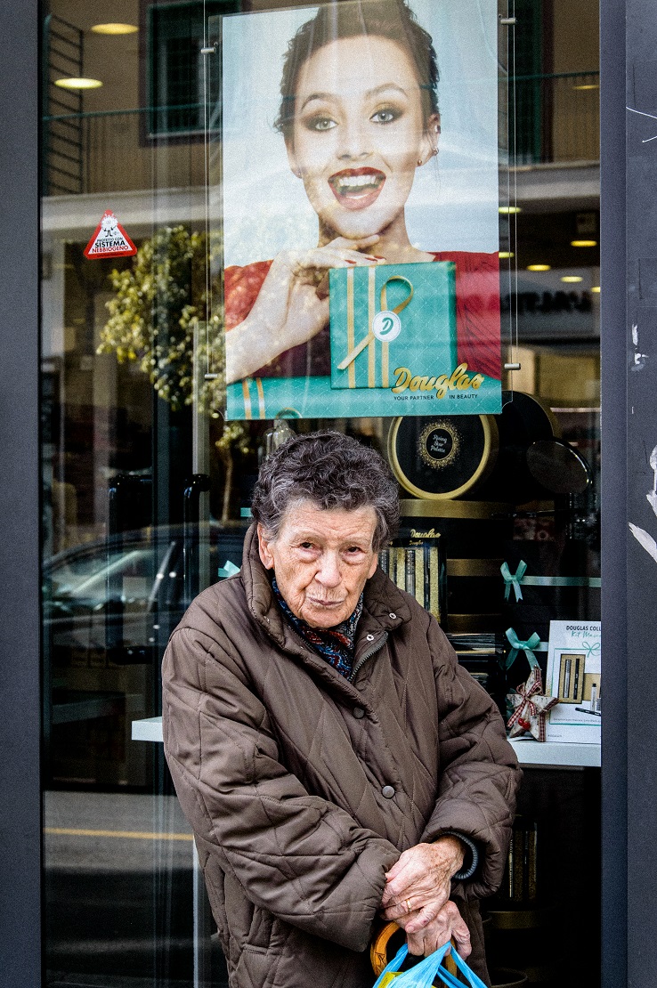 In generale non amo particolarmente le "Street coi cartelli" e forse a gusto personale taglierei un filo sopra per dare più risalto alla signora...