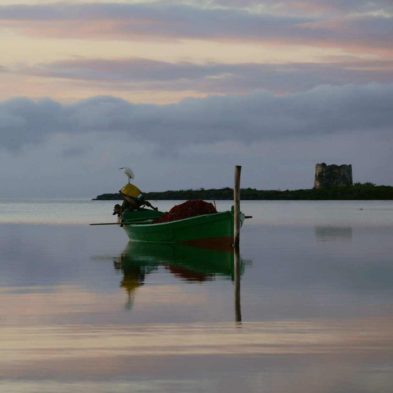 Eterea e terrena nello stesso tempo, sospesa su di un mare evanescente e un cielo che ne continua la magia ma la dura pietra e gli strumenti della fatica sono lì a testimoniare tutta la cultura di un luogo, l'airone a guardia di tutto è come una vecchia anima di pescatore che protegge e preserva la continuità tra passato e presente fatti degli stessi gesti e amore.
