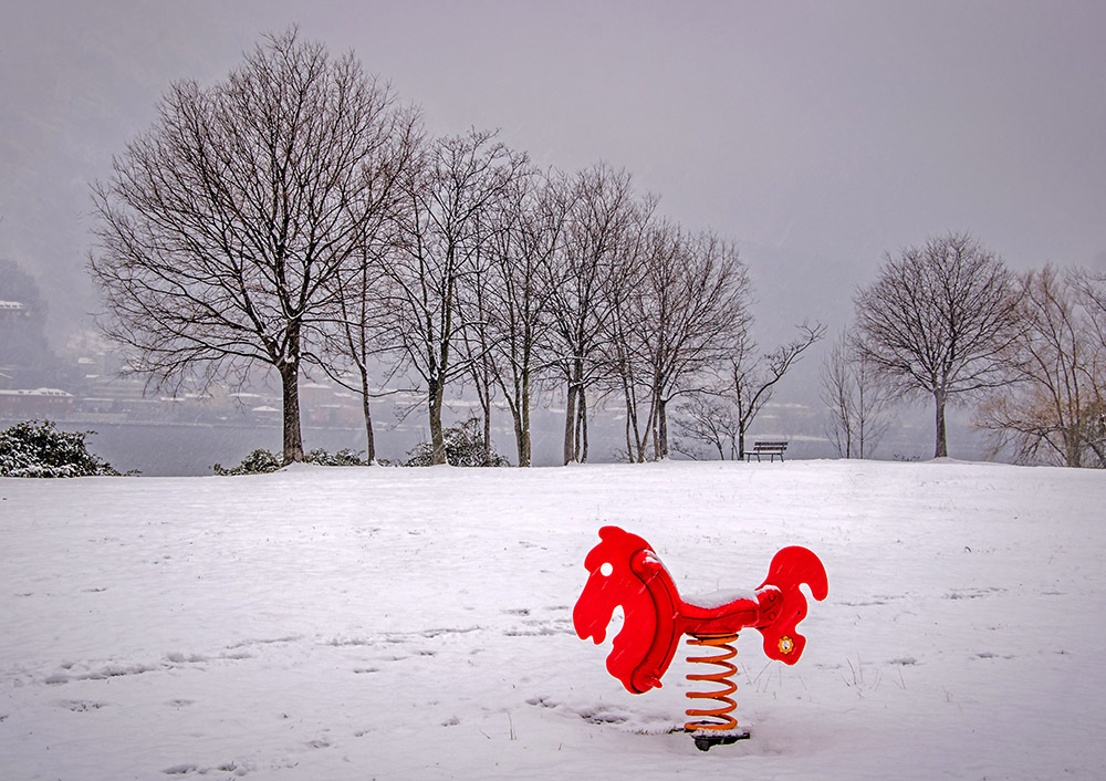 Immagine stupenda,fantastico questo cavallino rosso nella neve.Forse un miglior bilanciamento del bianco e meno vignettatura. Ciao