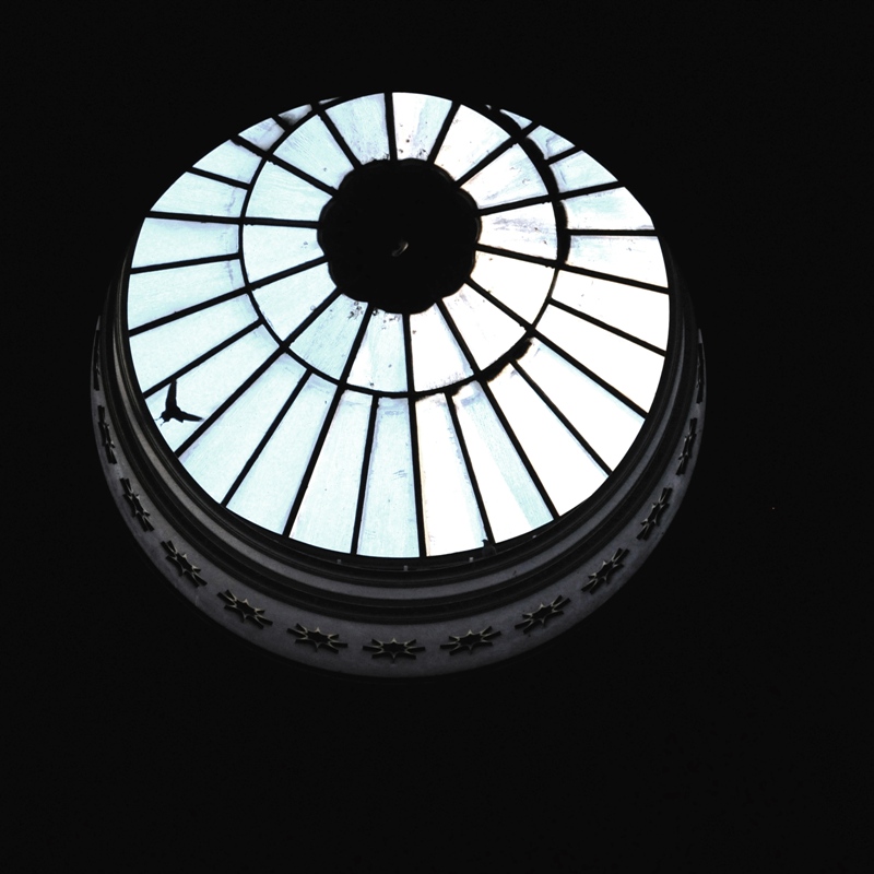 La ripresa l'hai fatta bene, leggermente spostata e questa scelta ha messo in risalto il decoro che si vede in basso a forma di fiore, ma la stessa vetrata della cupola riprende la forma di un fiore, la corolla all'apice e tanti petali intorno.