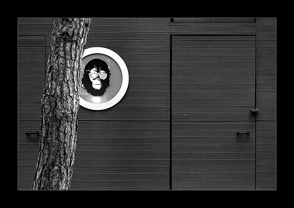 Uno scimpanzé che fa il "gorilla": sembra un bodygard messo a vigilare l'entrata. Il tronco rappresenta un richiamo naturalistico del soggetto. È una proposta che mi piace molto. _________________ "...una serie di piccoli attimi..."