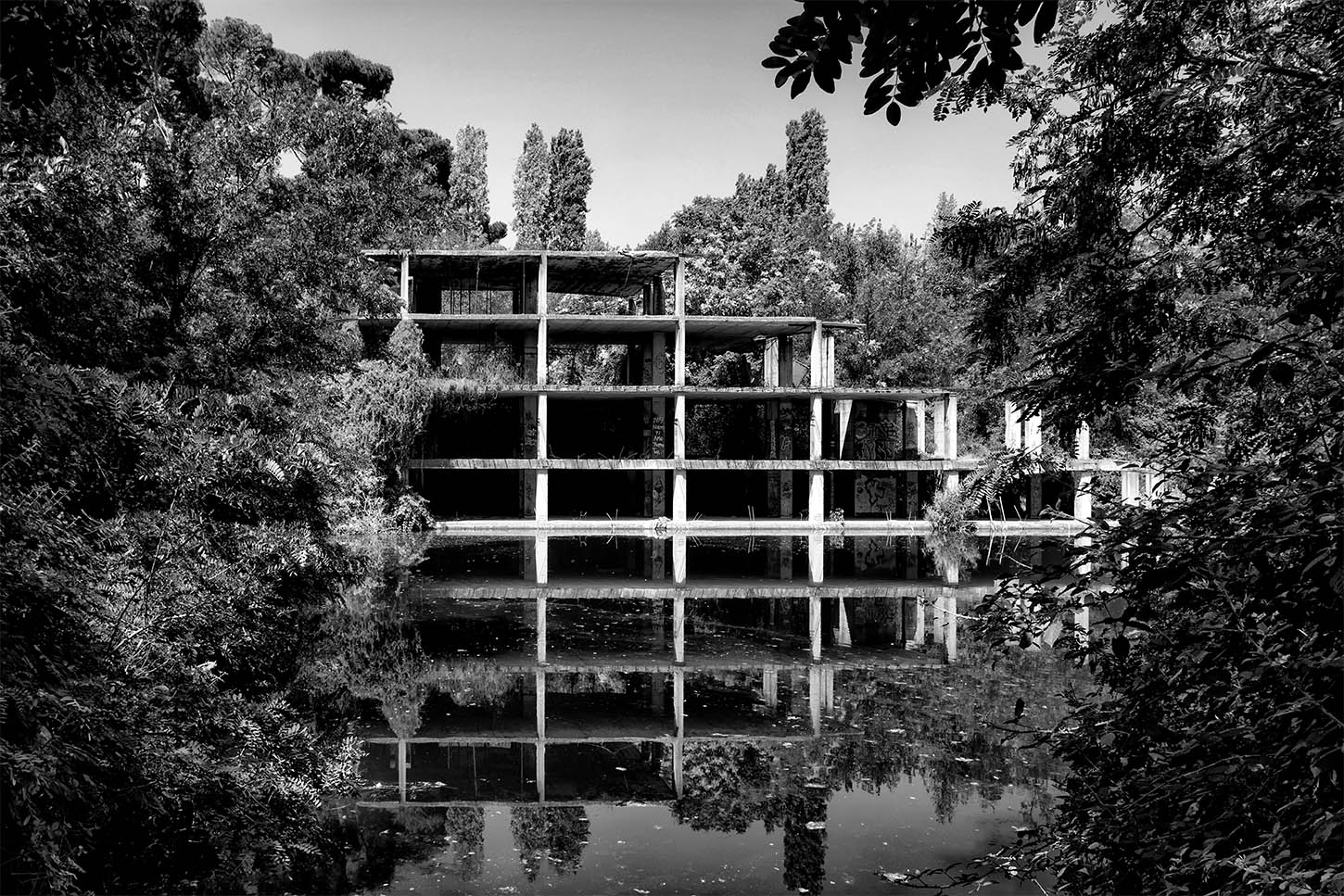 Sempre buono il tuo BN. Non fosse per la vegetazione che si specchia, quasi non si capirebbe dove finisce la struttura ed inizia il suo riflesso in acqua. Si sembra una costruzione si popolazioni Mesoamericane. Ciao