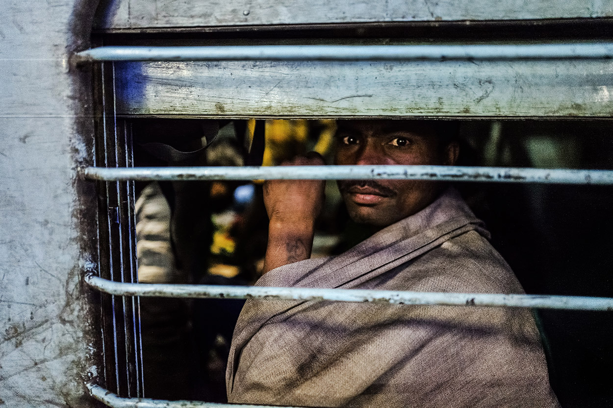 L'intensità di questo sguardo da solo fa la foto. Certo ci son diversi elementi di disturbo che forse non fanno emergere il viso completamente, ma ci si ritrova a cercare gli occhi all'interno di questa cornice,dietro queste simboliche sbarre,e,quando si trovano,catturano.Trasmettono forza,un animo un po' turbolento e attivo,non quieto e rilassato,non so,a me arrivano così. Mi piace molto.