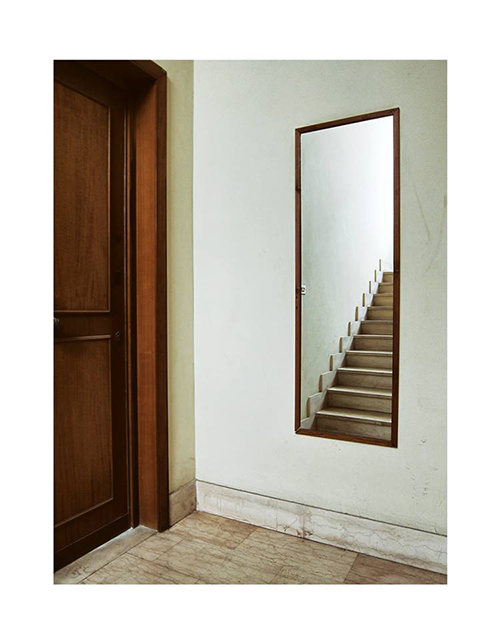 Da l'illusione che per prendere le scale bisogna entrare nella cornice.