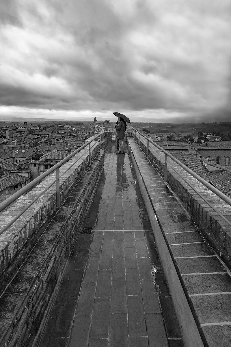 Molta strada per raggiungere visivamente la coppia, la si fa volentieri anche attraverso questo lastricato bagnato, attraverso anche un B/N che a me piace molto.