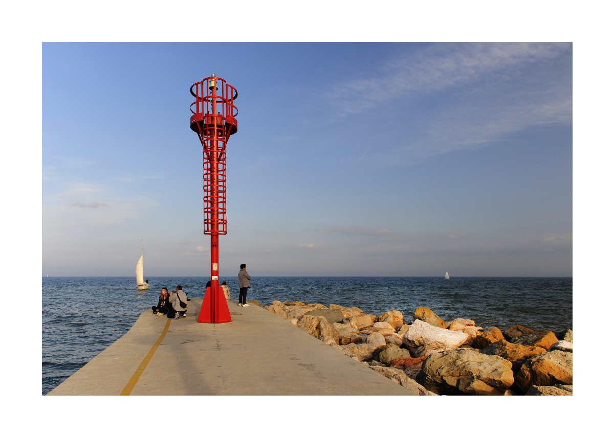 Bellissima composizione e splendidi colori.Il tramonto sembra attirare sempre tutti verso il mare,fantastico il fanale rosso. Ok! Ciao