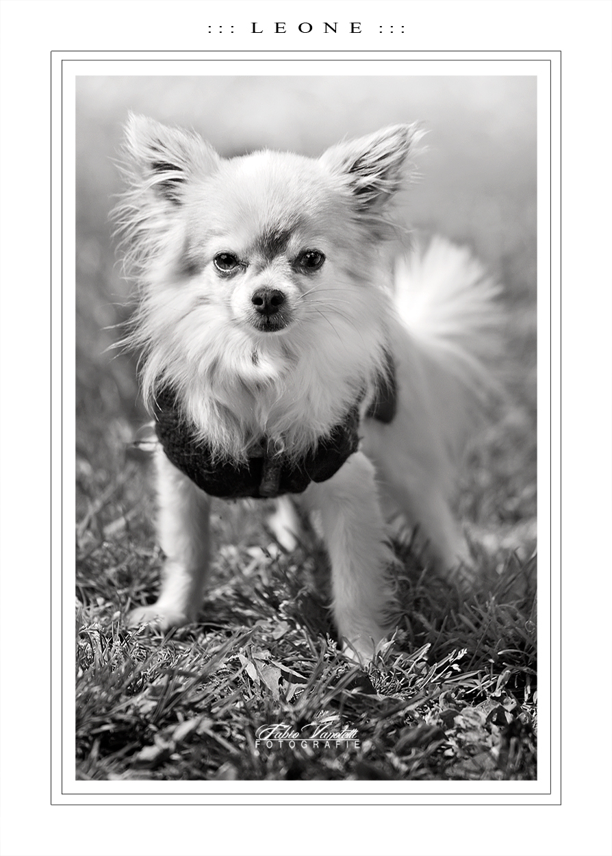 Oh ma che bello Leone! Un nome importante,portato con aria fiera da guardiano spietato e feroce,a discapito delle sue piccole dimensioni!Pur se son amante dei cani di grossa taglia,nutrendo un po di antipatia per quelli formato mignon ,questo piccoletto ha un musetto simpatico, sembra davvero a suo agio davanti all'obiettivo.Mettiamoci poi che tu ci sai fare ,ed ecco un bellissimo ritratto ,in un perfetto bn! Bravo  _________________