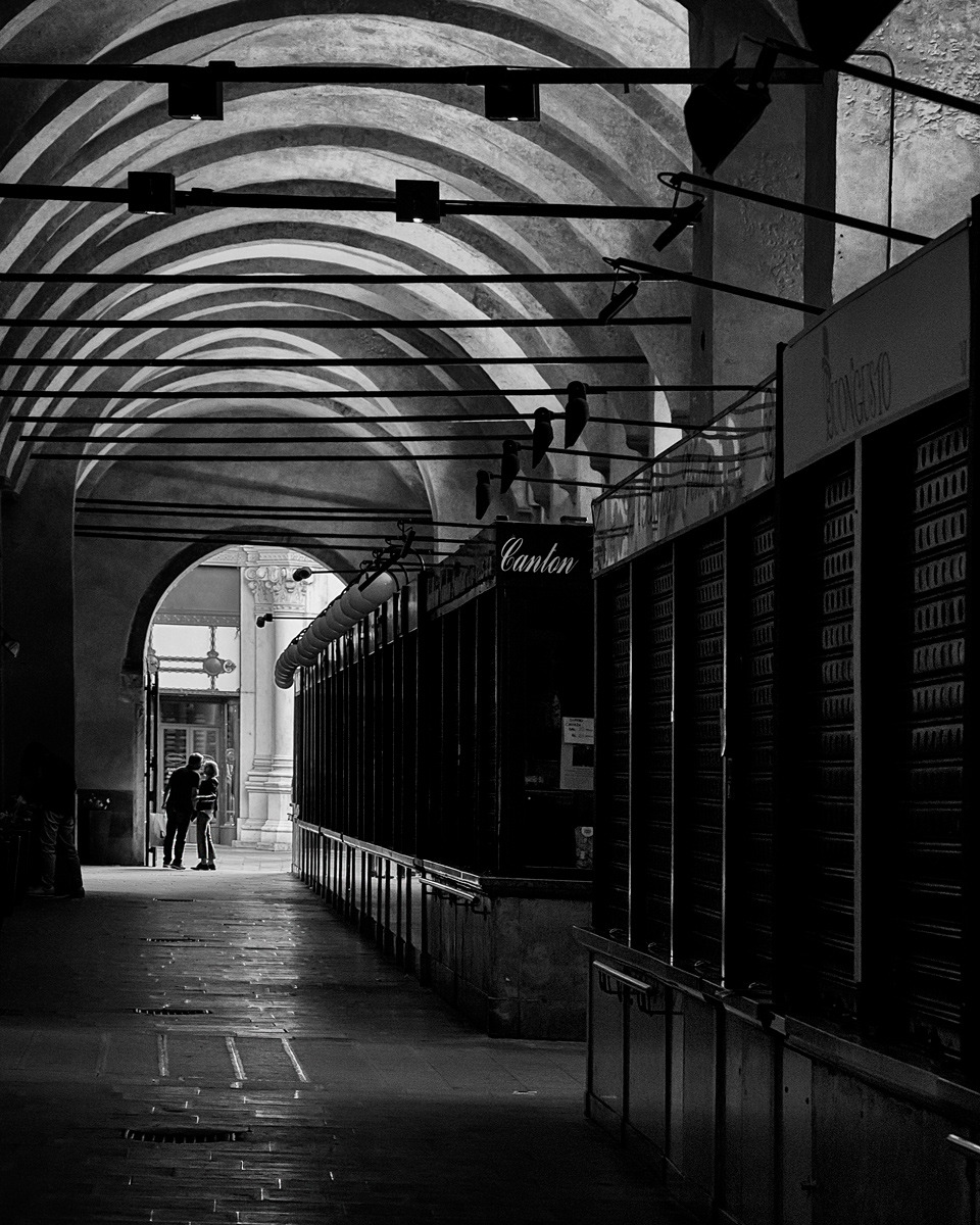 Un tocco di romanticismo, un intrigante tunnel di ombre che ci guida sino ad una lingua di luce e alla coppia,colta in un momento tutto loro, di complicità. Spiati nell'intimità dei loro gesti con discrezione.Bello il gioco di linee e archi sul soffitto e la profondità che vanno a creare.Insomma una prova molto piacevole bravo Nico  _________________