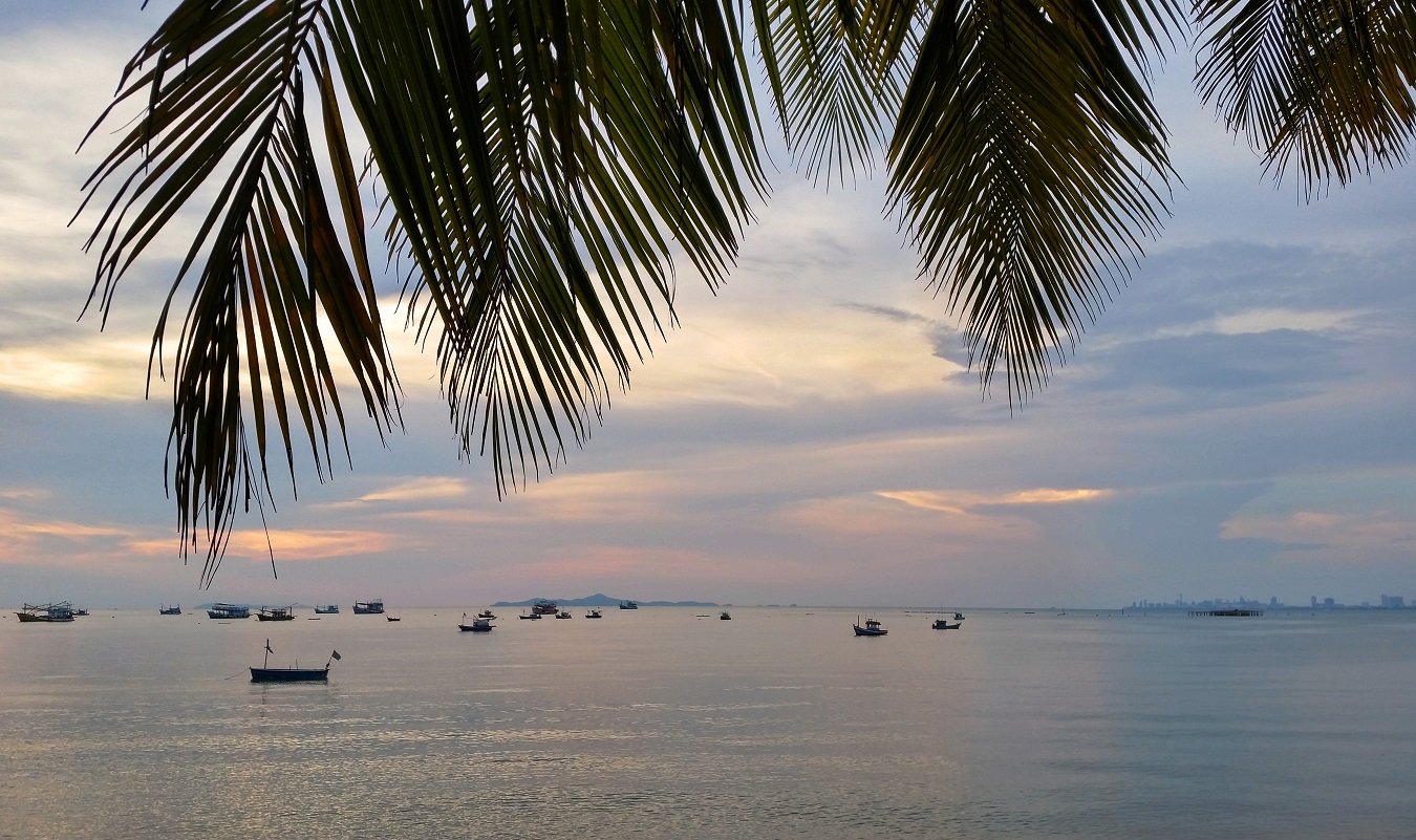 E' il punto di vista di una persona "sbracata" sotto una palma a godersi un paesaggio arricchito dalle tinte calde del tramonto.