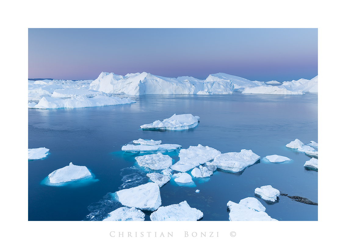 Beh nelle parti di ghiaccio immerse è normale..il rosa nel cielo indica proprio i minuti appena precedenti al sorgere del sole, quindi i colori sono questi..anzi in post ho scaldato molto