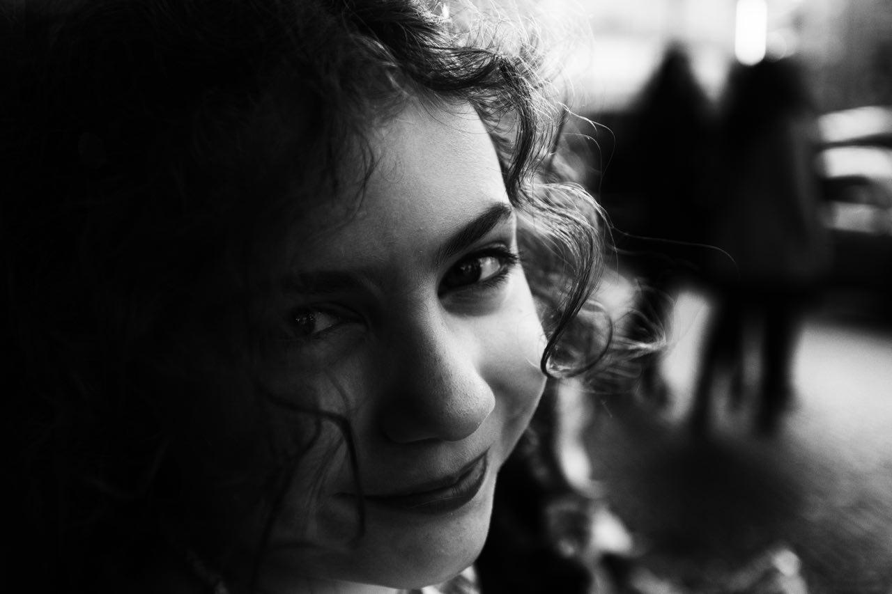 La trovo già migliore dell'altra. Anche qui c'è uno sfondo molto presente con gente dietro che ruba un po' l'attenzione ma in effetti è meno invadente rispetto all'altra tua proposta. Forse potresti aprire un pochino le ombre ed attenuare leggermente la luce ma è da provare, questo bn già è molto più di carattere rispetto all'altra proposta. Emma è molto brava ed espressiva  |