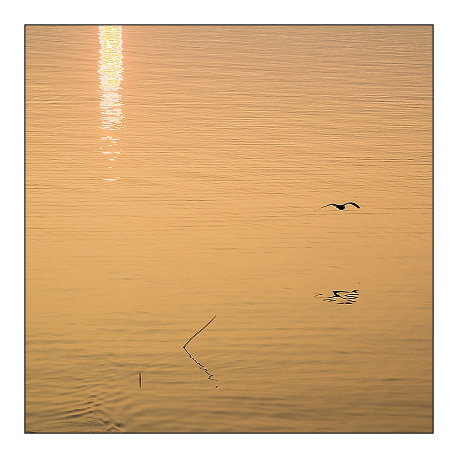 Minimalissima, due tratti appena accennati, un bacio di luce sull'acqua color miele ed ecco un quadro visionario ed affascinante.
