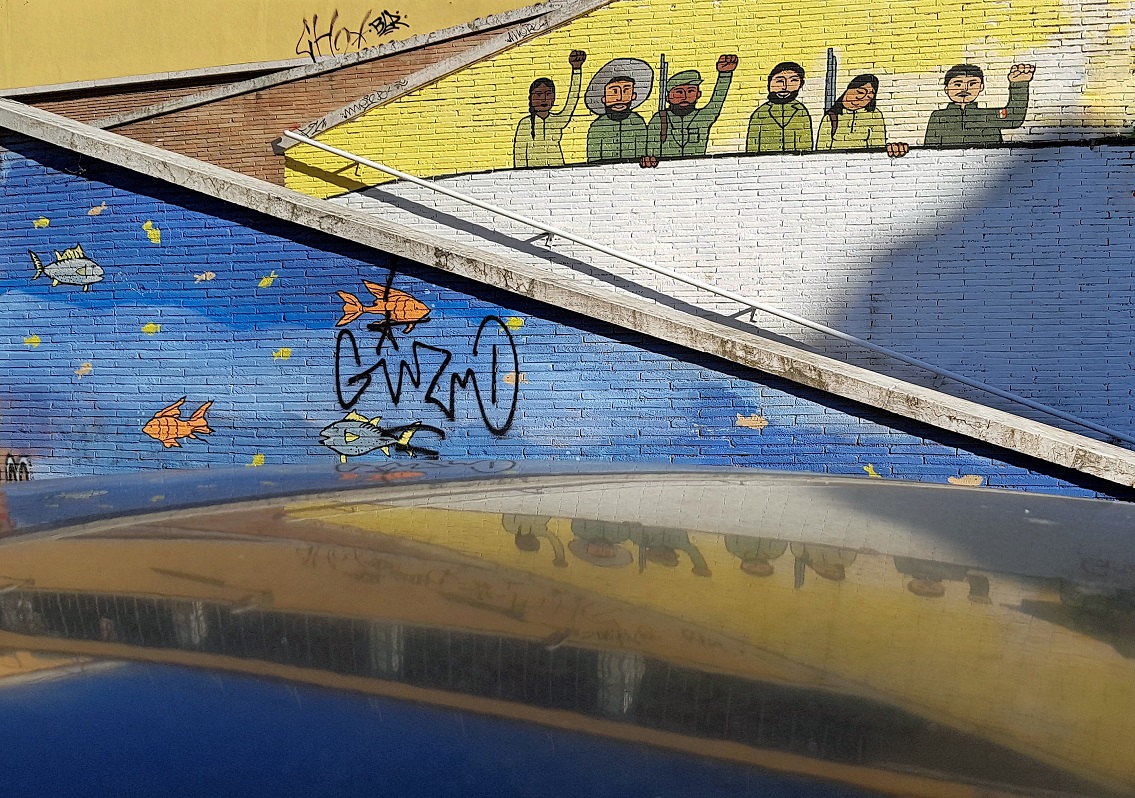 Mi stavo chiedendo chi fosse Claudio.... Bella foto, bel gioco di linee e colori oltre alle diverse forme di pittura. Ottima.