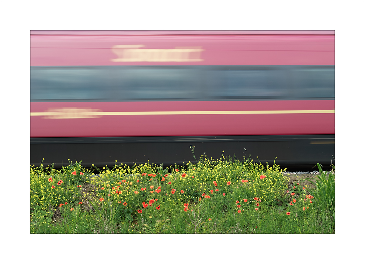 bellissime queste strisce di colore che sfrecciano mentre i papaveri stanno a guardare- Mi piace molto